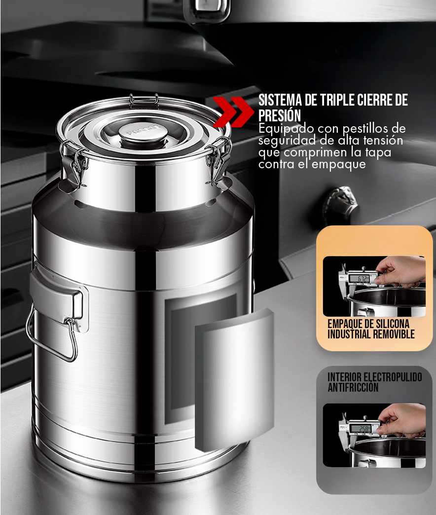 Totalmente. De hecho, este diseño es el estándar en la industria láctea artesanal. La ausencia de poros y las esquinas internas redondeadas evitan la proliferación de bacterias. El sellado hermético evita que la leche absorba olores del refrigerador, manteniéndola fresca por más tiempo.