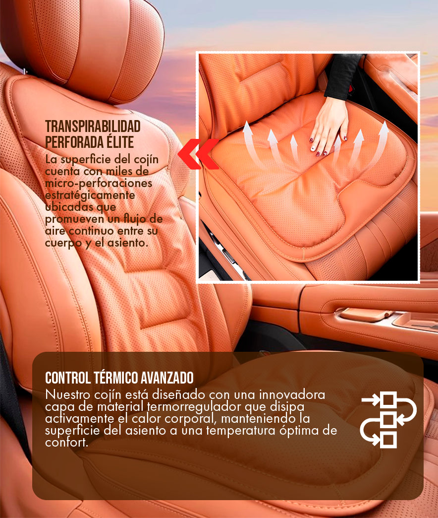Funciona de manera efectiva debido a su diseño de ingeniería dual. Primero, el material exterior perforado facilita una transpiración constante, permitiendo que la humedad se evapore en lugar de quedarse atrapada entre su cuerpo y el asiento. Segundo, la capa interna de gel y la espuma de densidad controlada disipan el calor corporal antes de que se acumule. Esto no es solo una "sensación fresca" inicial, sino un control de temperatura constante y activo que garantiza sequedad y comodidad durante todo el trayecto.