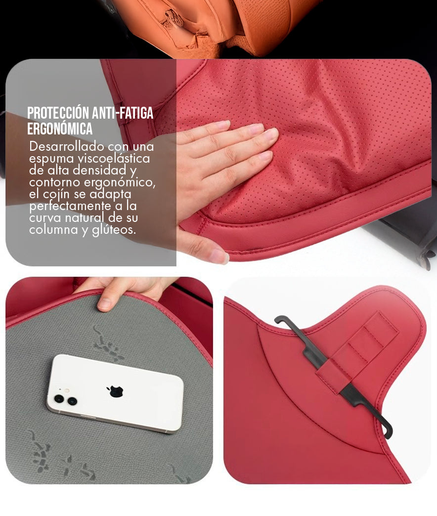 La fricción, los derrames y el sol degradan el tapizado de su coche con el tiempo, afectando su valor de reventa. Nuestro cojín premium es la primera línea de defensa. Es una barrera de protección duradera que preserva la condición original del asiento, manteniendo la estética interior impecable, lo que se traduce en un mayor valor de su vehículo.