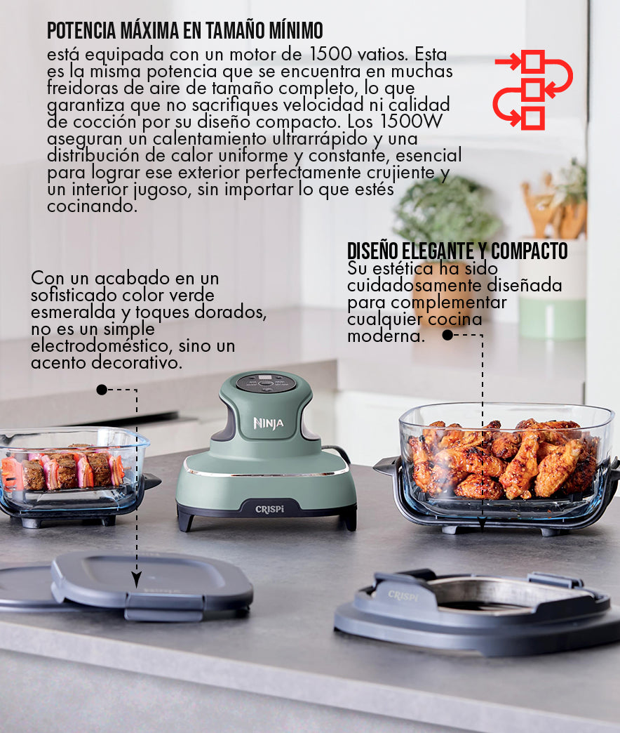 La frustración de tener una cocina pequeña ya no debe ser un obstáculo para tus metas de bienestar. La Ninja CRISPI PowerPod™ rompe esa barrera, ofreciéndote la tecnología de cocción más avanzada en el formato más amigable con el espacio. Siente la liberación de tener un electrodoméstico potente que se adapta a tu vida, no al revés.