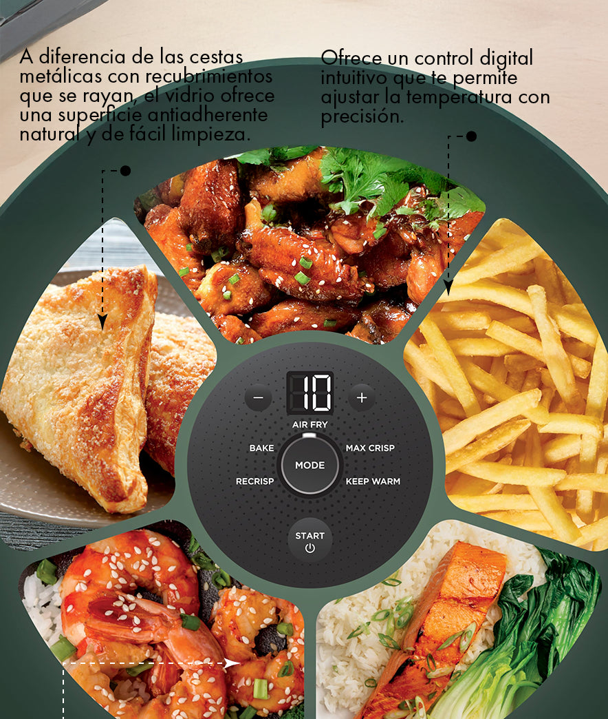 Nuestros estudios de usuarios demuestran que, gracias a la eficiencia del sistema Air Crisp de 1500W de la PowerPod, la necesidad de usar aceite se minimiza drásticamente. Esto no solo contribuye a una dieta más saludable con menos grasas, sino que también significa un ahorro significativo a largo plazo en el consumo de aceite de cocina.