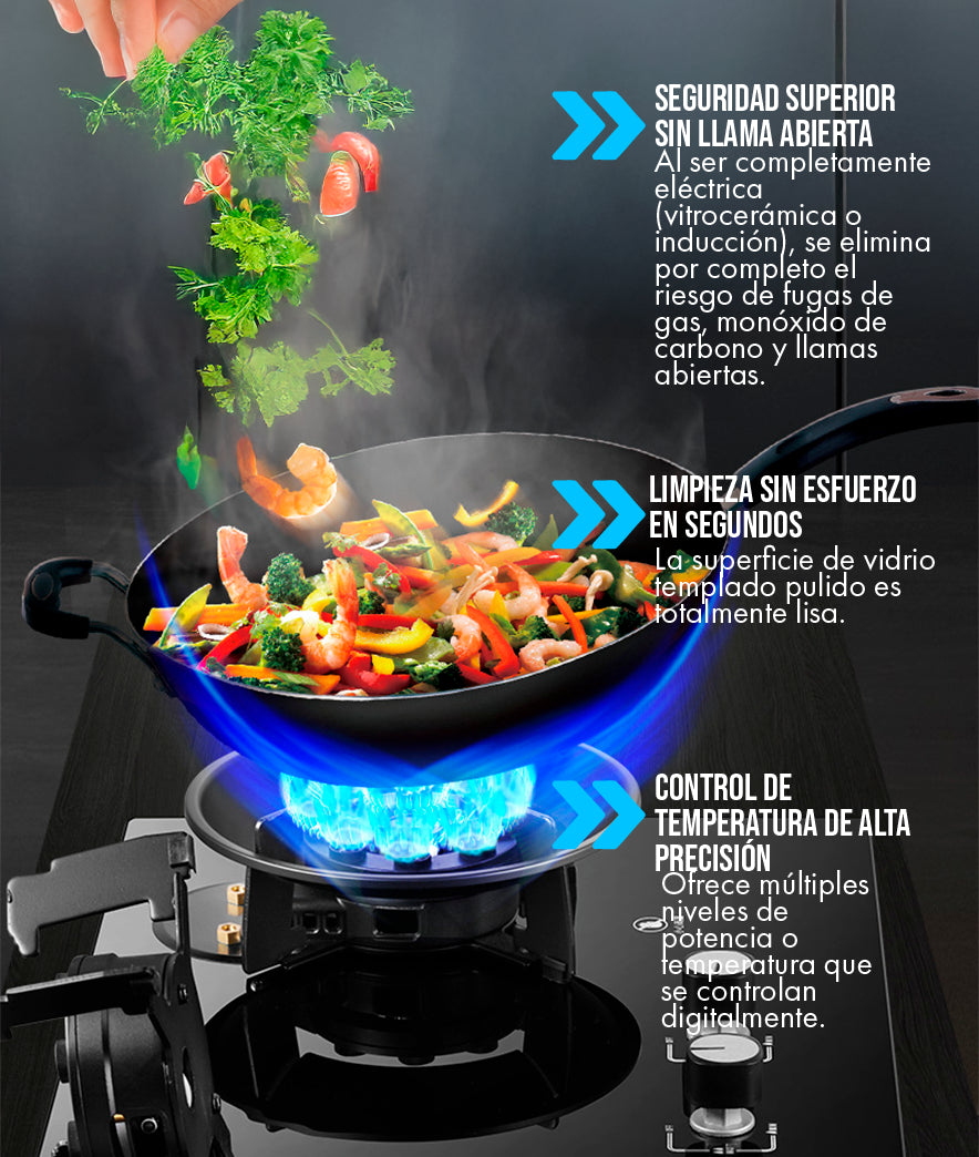 La seguridad del hogar no tiene precio. Duerme con total tranquilidad sabiendo que has eliminado el riesgo latente de gas y llamas abiertas de tu cocina. Es una inversión en tu paz mental.