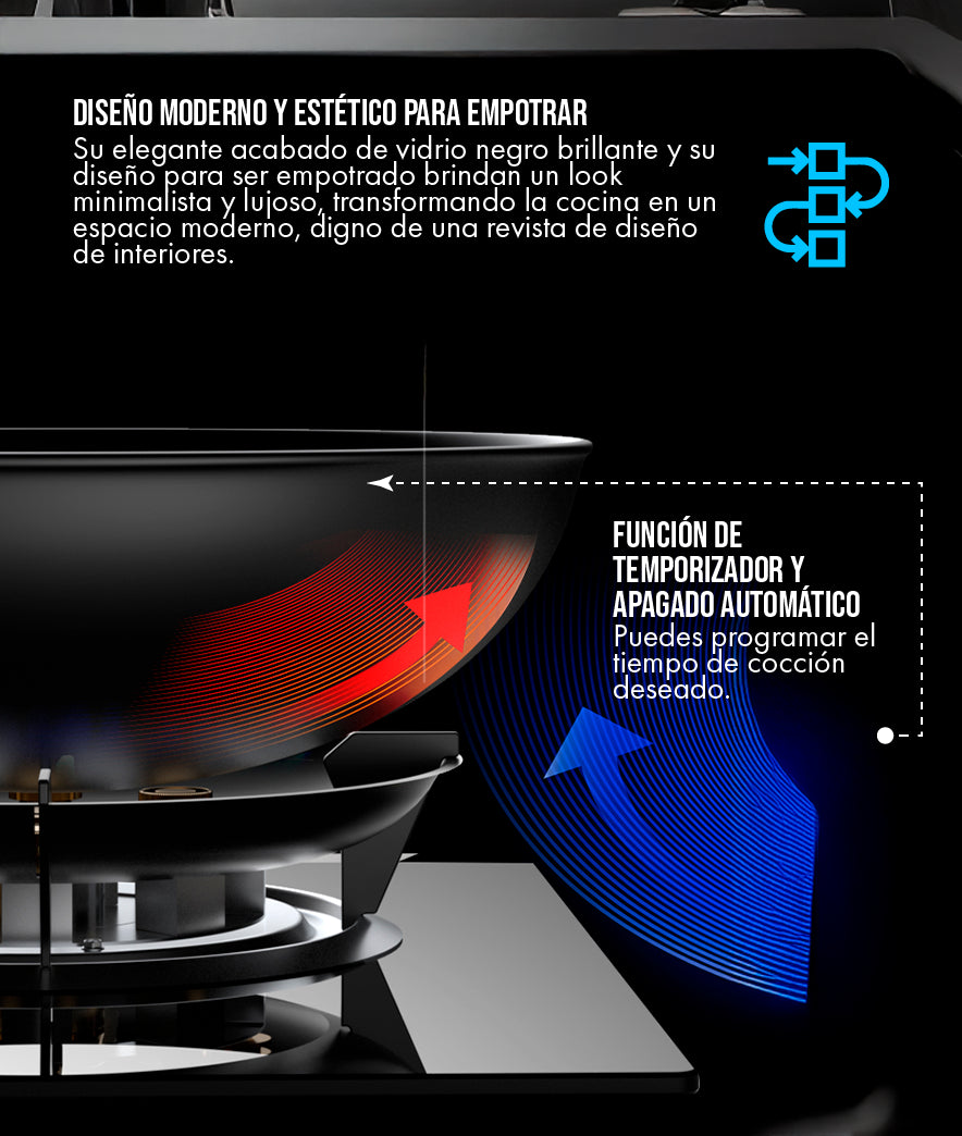 La estética importa. El diseño minimalista, elegante y premium de esta estufa elevará el valor y la percepción de lujo de todo tu hogar. Cocina con estilo y presume de un diseño de vanguardia.