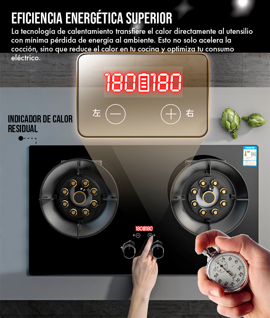Cero riesgo de fugas de gas y indicador de calor residual. |