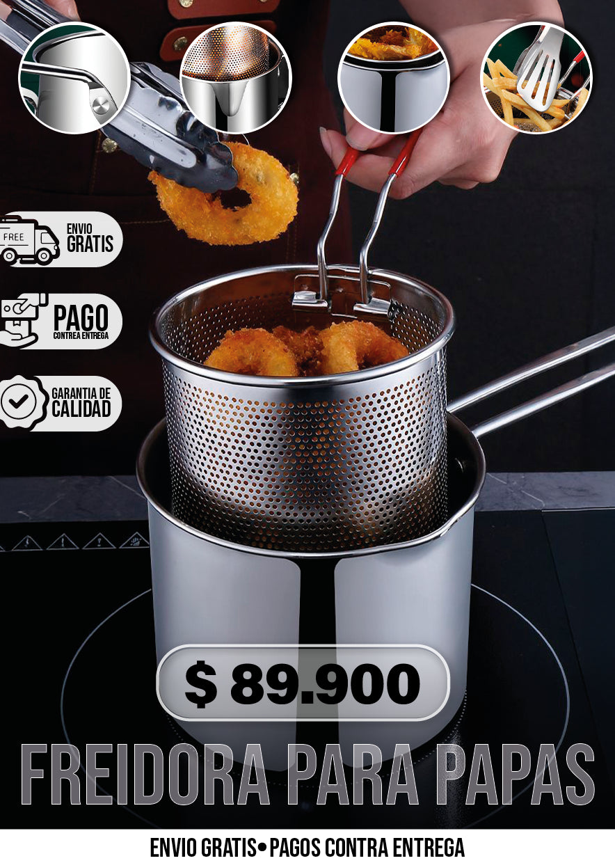 Nuestra freidora de acero inoxidable con malla densa es la solución perfecta para obtener papas fritas siempre deliciosas.