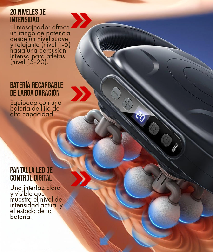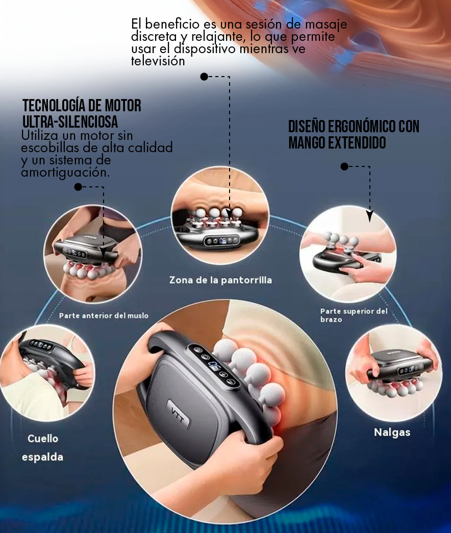 ¡LA TERAPIA PROFUNDA, AHORA ACCESIBLE 24/7 EN SU HOGAR! Este masajeador es una inversión de una sola vez que le da el poder de un terapeuta experto, disponible en el momento exacto en que siente el dolor. Su bienestar, sin el alto precio recurrente.