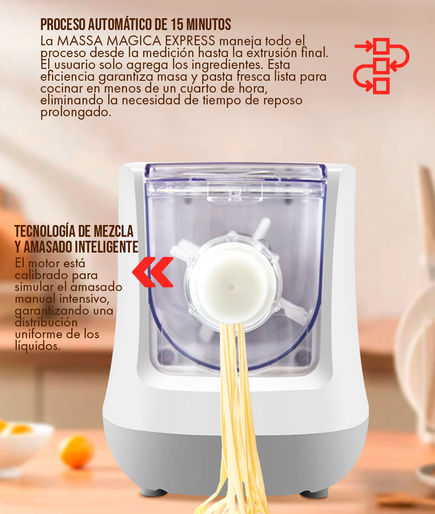 ¡AUTENTICIDAD Y SABOR QUE NUNCA IMAGINÓ! Con la MASSA MAGICA EXPRESS, usted controla cada ingrediente. El sabor y la textura de la pasta fresca casera no tienen comparación, ¡transforme sus cenas en una experiencia gourmet!