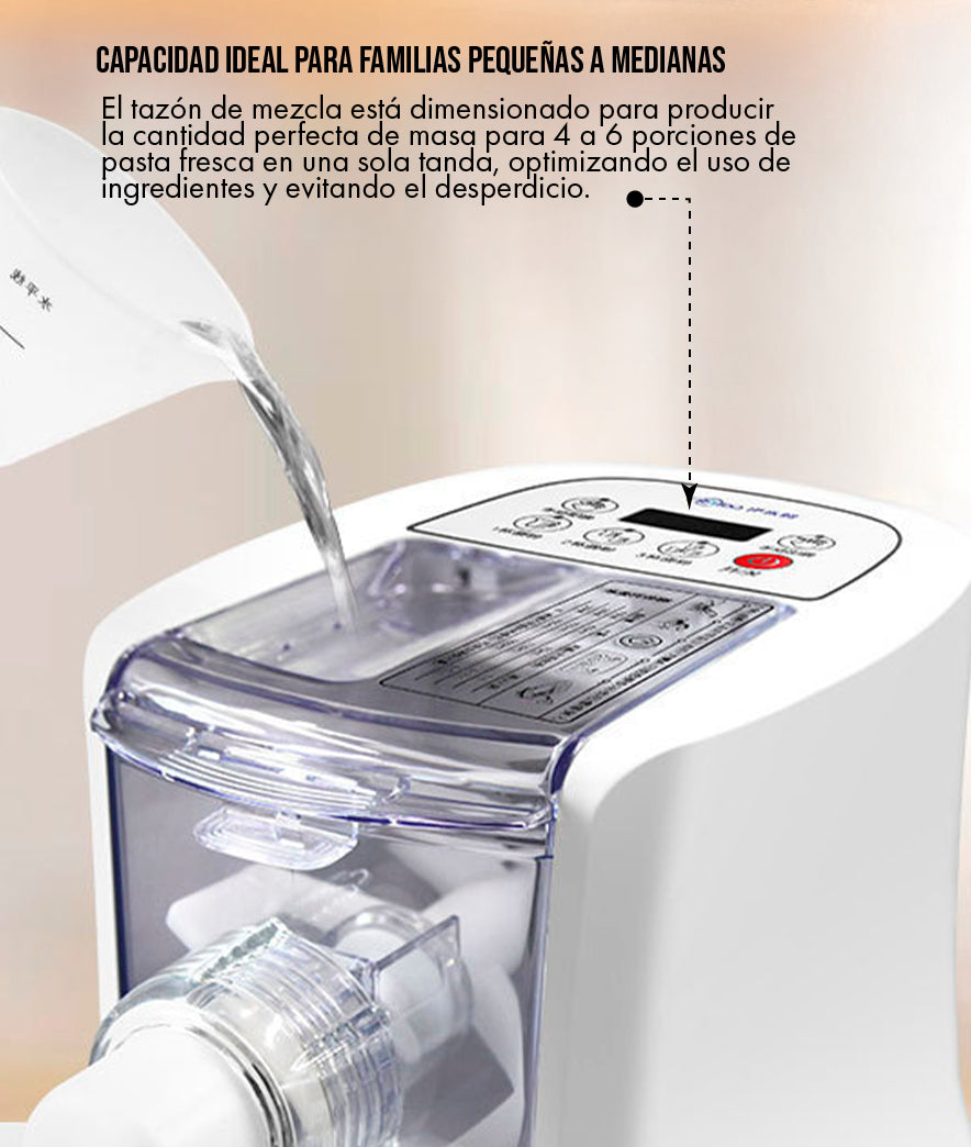¡NUTRICIÓN PERSONALIZADA CON TOTAL CONTROL! Use harinas integrales, sin gluten, o añada jugos de vegetales (espinaca, remolacha) para dar color y vitaminas a su pasta. Coma más sano sin sacrificar el sabor.