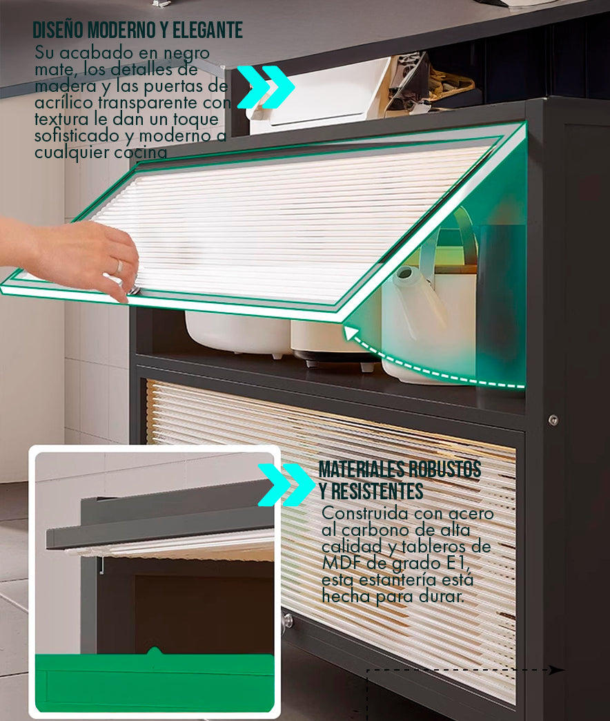 ¡LA BELLEZA SE UNE A LA FUERZA! Fabricada con materiales de alta calidad, la estantería BIAONIU™ es una pieza robusta que puede soportar el peso de tus electrodomésticos más pesados. No es un mueble de usar y tirar, es una inversión en la funcionalidad y belleza de tu hogar por muchos años.