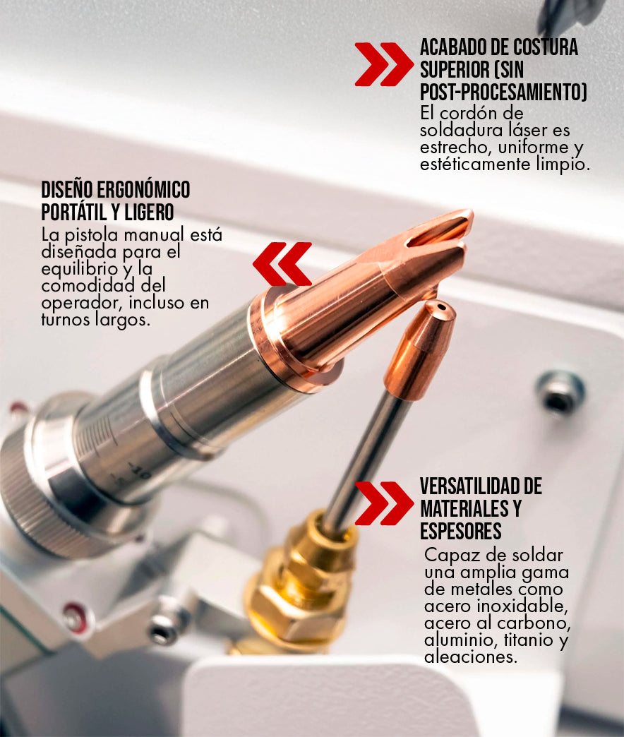 ¡PASE DE ARTESANO A INGENIERO DE UNIÓN! La PISTOLA LÁSER PORTÁTIL le permite ofrecer acabados de calidad aeroespacial. Gane proyectos de alta gama que antes estaban fuera de su alcance.