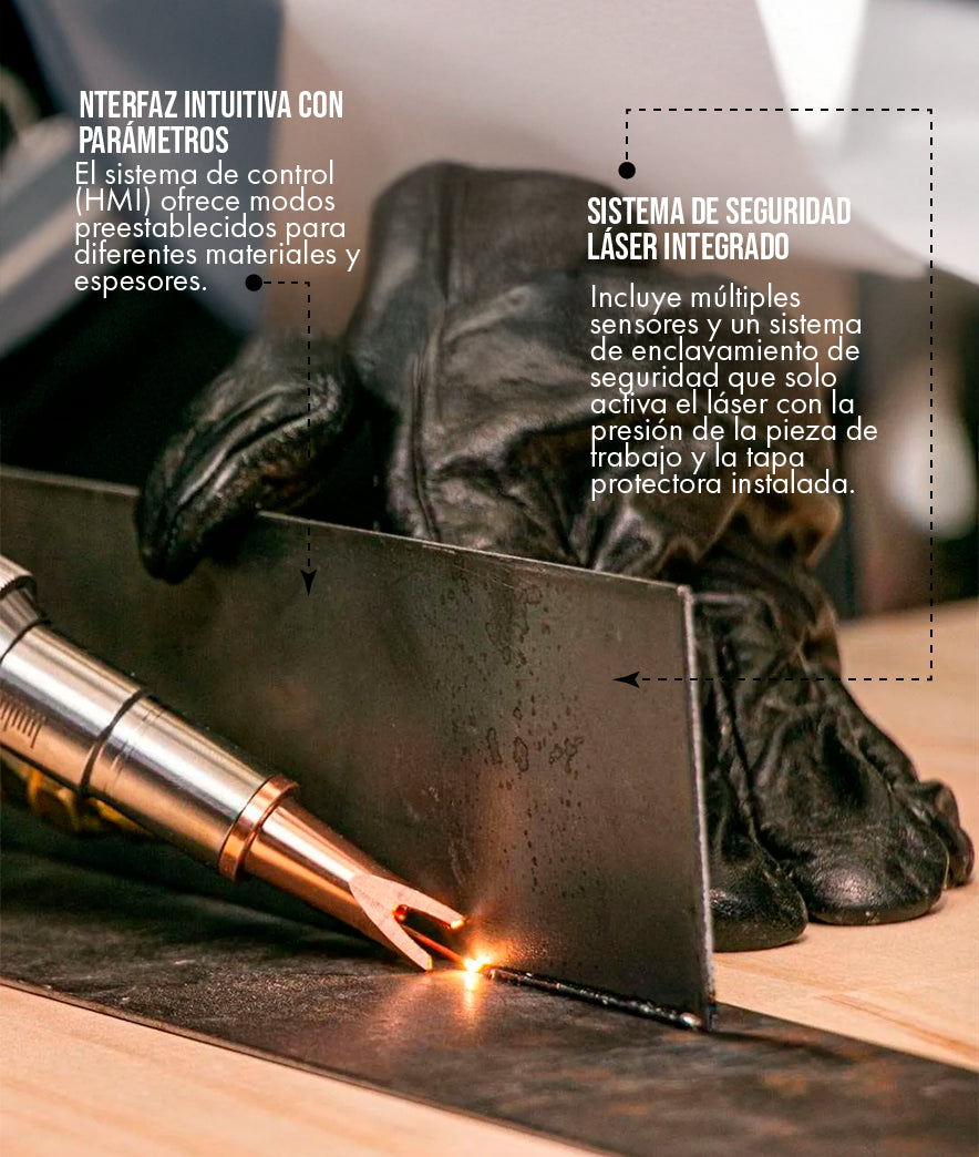 La seguridad es nuestra máxima prioridad. El sistema está equipado con múltiples interlocks de seguridad que cumplen con las normas internacionales. La pistola solo emite el haz cuando está en contacto directo con la pieza de trabajo. Además, se requiere que el operador use gafas protectoras láser certificadas (incluidas) para filtrar la luz reflejada. El uso adecuado garantiza la seguridad total.
