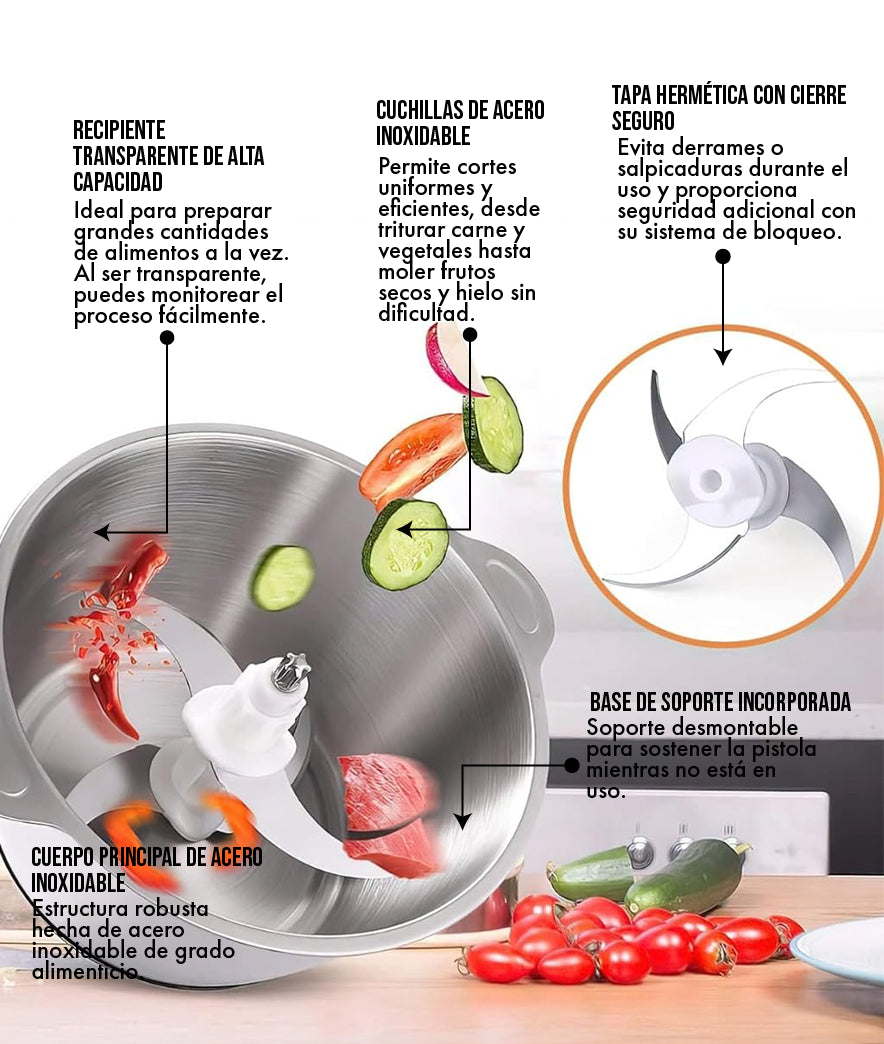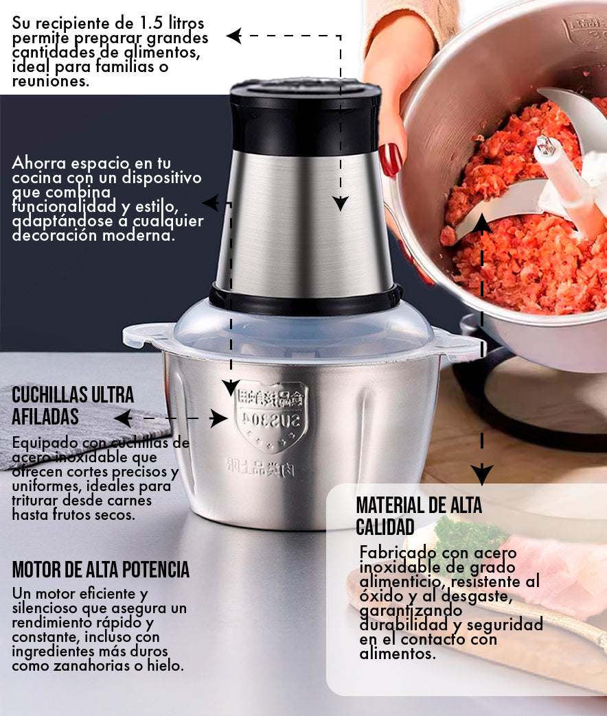Con su recipiente de 1.5L, el procesador es tu aliado perfecto para cocinar para todos sin tener que repetir el trabajo.