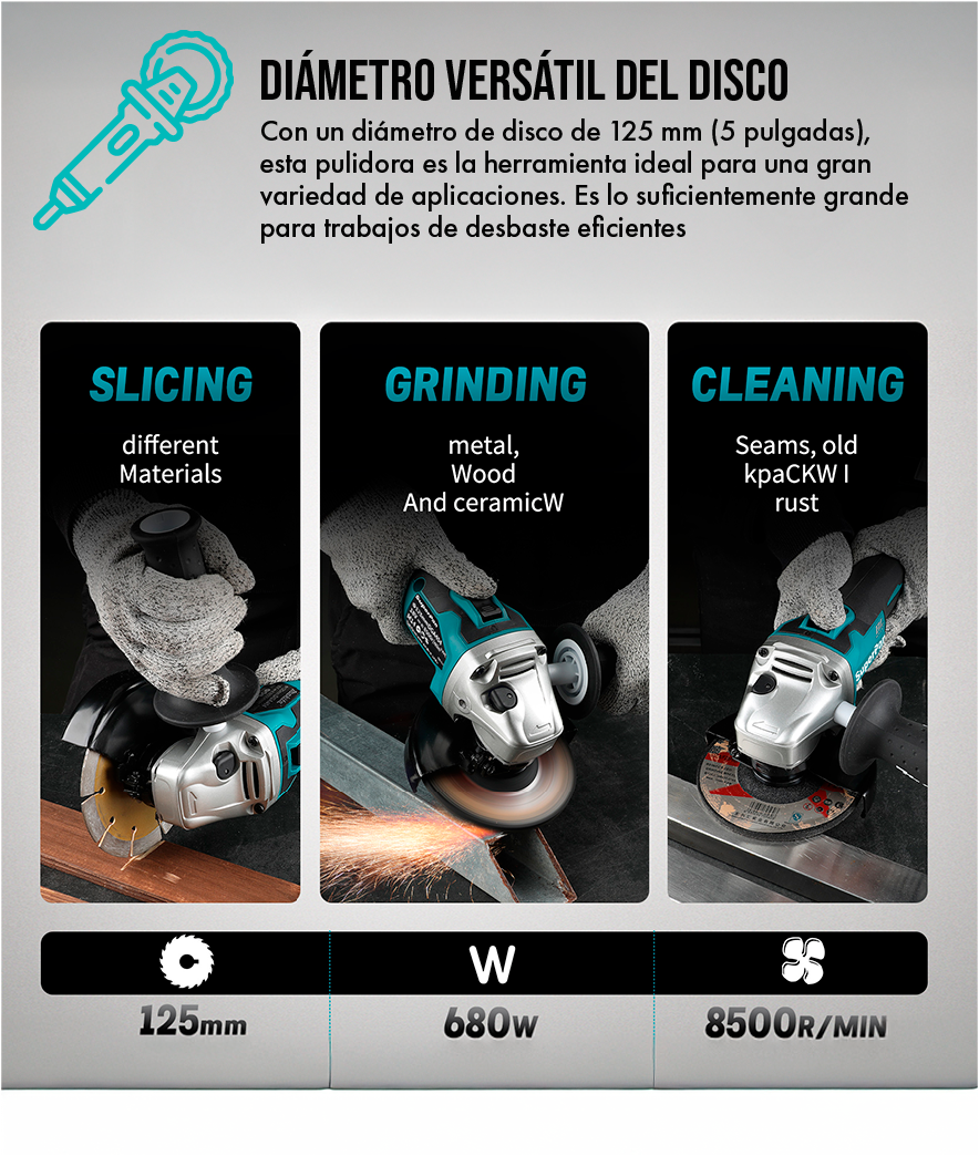 ¡El control está en tus manos! Los 4 ajustes de velocidad te permiten dominar cualquier tarea, desde un desbaste agresivo en metal hasta un pulido fino en superficies delicadas. Logra acabados impecables que demuestren tu maestría en cada proyecto.