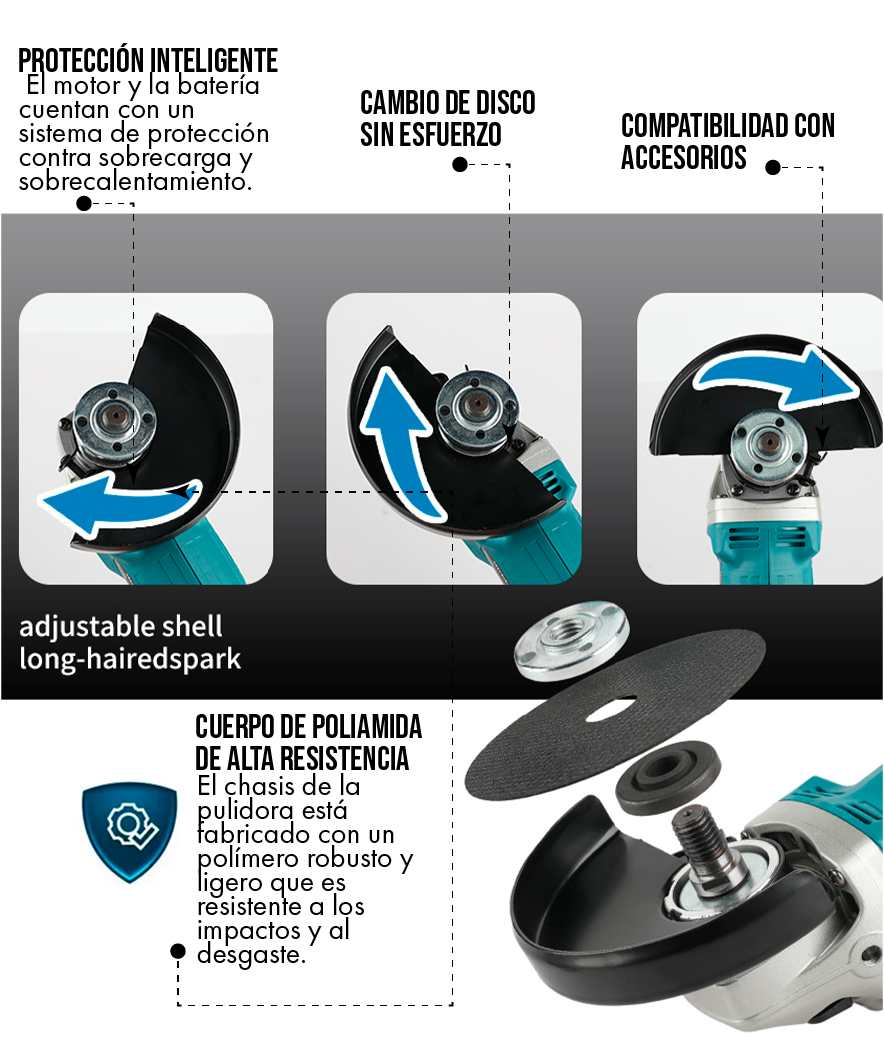 La tecnología sin escobillas no solo prolonga la vida de tu herramienta, sino que también reduce el ruido y las vibraciones. Trabaja por más tiempo sin la fatiga de un equipo ruidoso y pesado. Siente la diferencia en tus manos y en la calidad de tus acabados.