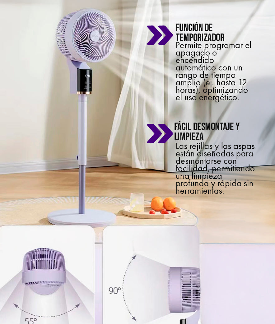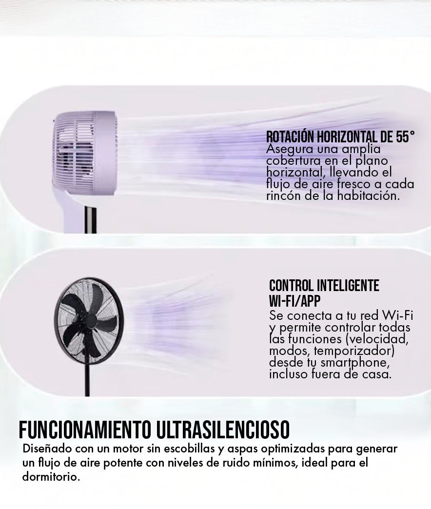 de Reducción en Consumo Eléctrico: Gracias a su motor DC de alta eficiencia, consume hasta un 40% menos de energía que un ventilador de pedestal promedio.
