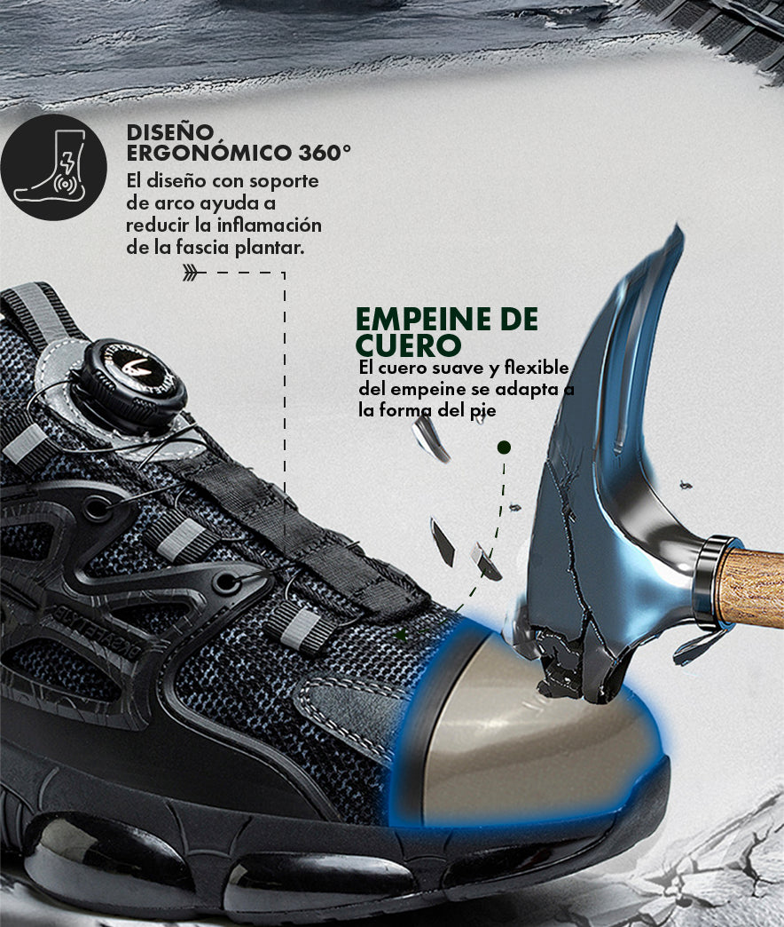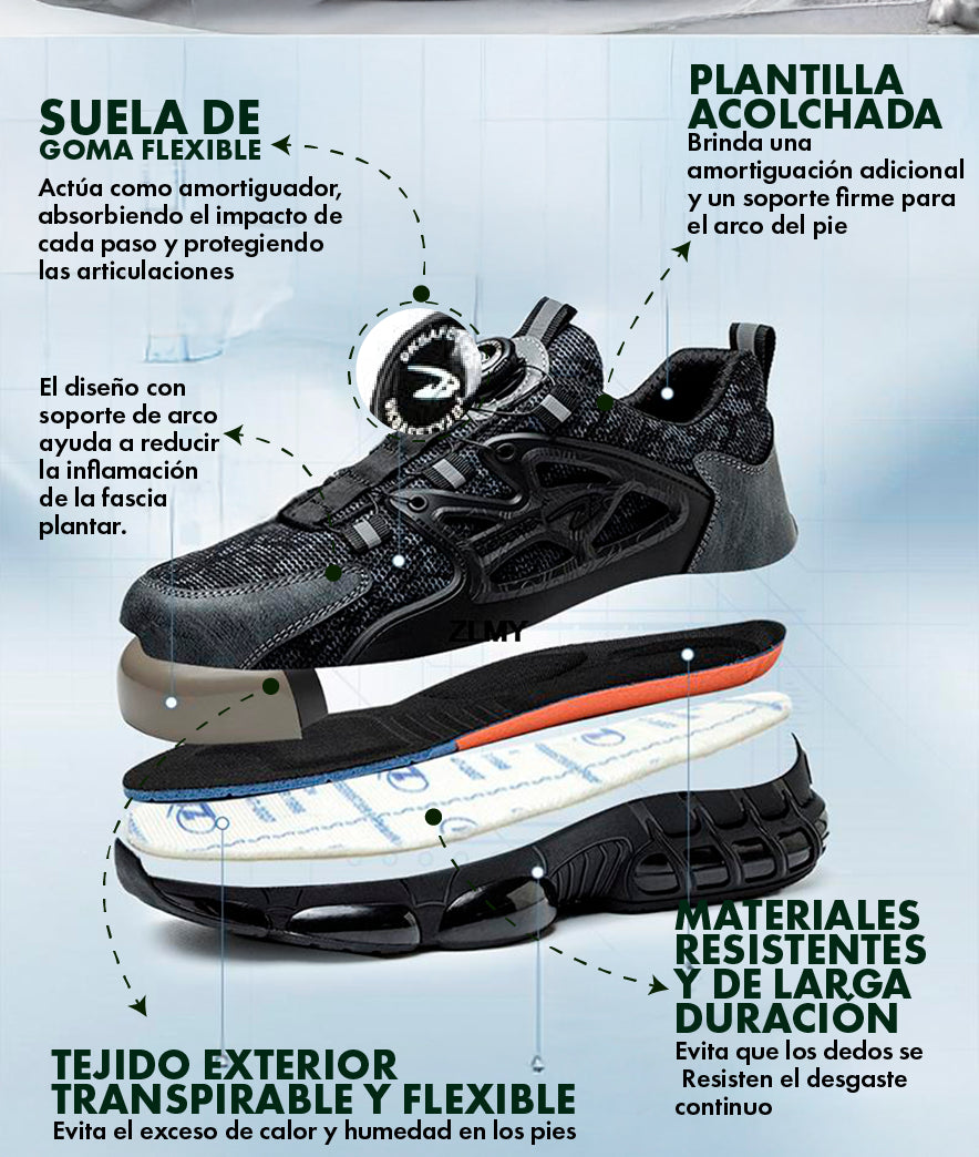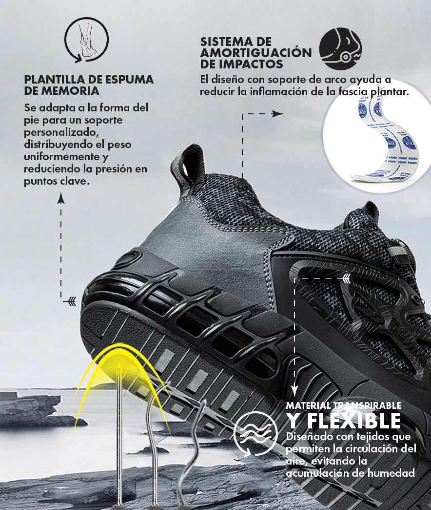 ¡Recupera tu energía y agilidad laboral! El peso de unas botas viejas te roba vitalidad. Nuestras zapatillas ultraligeras te dan la sensación de estar usando zapatillas deportivas, permitiéndote mantener un ritmo constante y terminar tu jornada sintiéndote fuerte y listo para más.