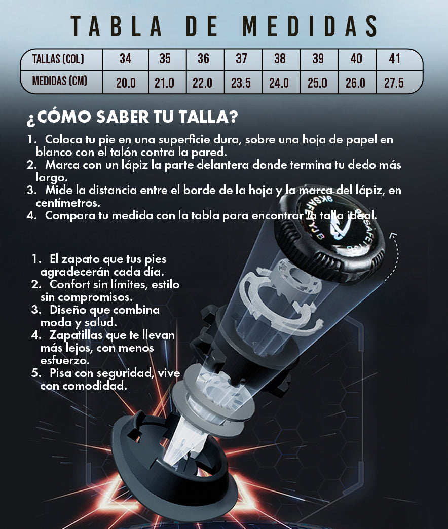 ¡Ajuste perfecto en un segundo! Dile adiós a los peligros de los cordones sueltos. Nuestro innovador sistema de dial te permite asegurar o liberar tus pies con un simple giro, dándote un ajuste uniforme que dura todo el día, mejorando la seguridad y ahorrándote tiempo.